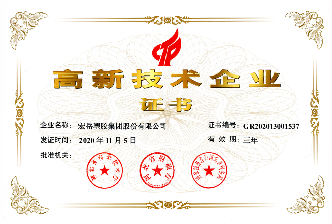 华体会体育被认定为河北省高新技术企业,华体会体育牌塑料管材管件被认定为国家免检产品。