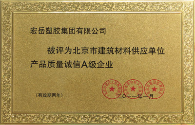 日前,北京市住房和城乡建设委员会召开了塑料管材管件、建筑门窗和聚氨酯防水涂料产品质量评价启动工作会议,并评出首批“A级产品质量诚信企业”,华体会体育塑胶集团有限公司凭借过硬的产品质量和良好的企业信誉,荣获北京市塑料管材管件“A级产品质量诚信企业”称号。