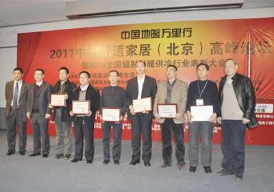 由中国建筑金属结构协会辐射供暖供冷委员会主办的“2010年度辐射供暖供冷行业年度评比活动”圆满结束,并于2011年3月4日在北京举行颁奖典礼,华体会体育管业凭借多年来在地暖行业的突出贡献及取得的巨大发展成就,被评选为“2010年度全国辐射供暖供冷行业先进集体”,集团公司总经理助理王明科和市场部经理刘汉良由于多年来积极参与地暖行业活动,为推动行业发展及企业建设发挥了重要的作用,被评选为“2010年度辐射供暖供冷行业先进工作者”。同时,秦皇岛华体会体育建筑安装有限公司荣获“2010年度全国辐射供暖供冷行业优秀施工企业”称号。