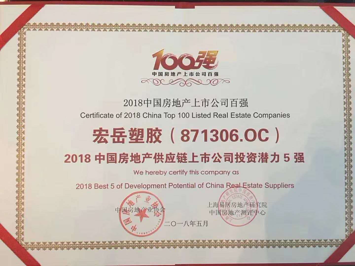 由中国房地产业协会、上海易居房地产研究院中国房地产测评中心联合开展的“2018中国房地产上市公司测评成果发布会暨金融创新高峰论坛”在深圳举行,华体会体育荣获“2018中国房地产供应链上市公司投资潜力5强”。