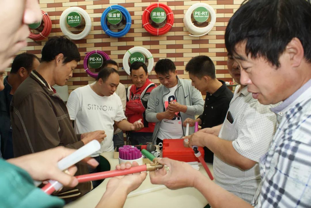 华体会体育1+事业部产品工程师依工详尽介绍了华体会体育1+的产品技术以及应用知识,着重讲解了pe-xa的施工工艺、PVC快修管件及其它配套产品的应用,现场通过实物实例,充分地展示了华体会体育1+产品的技术先进性和质量可靠性。