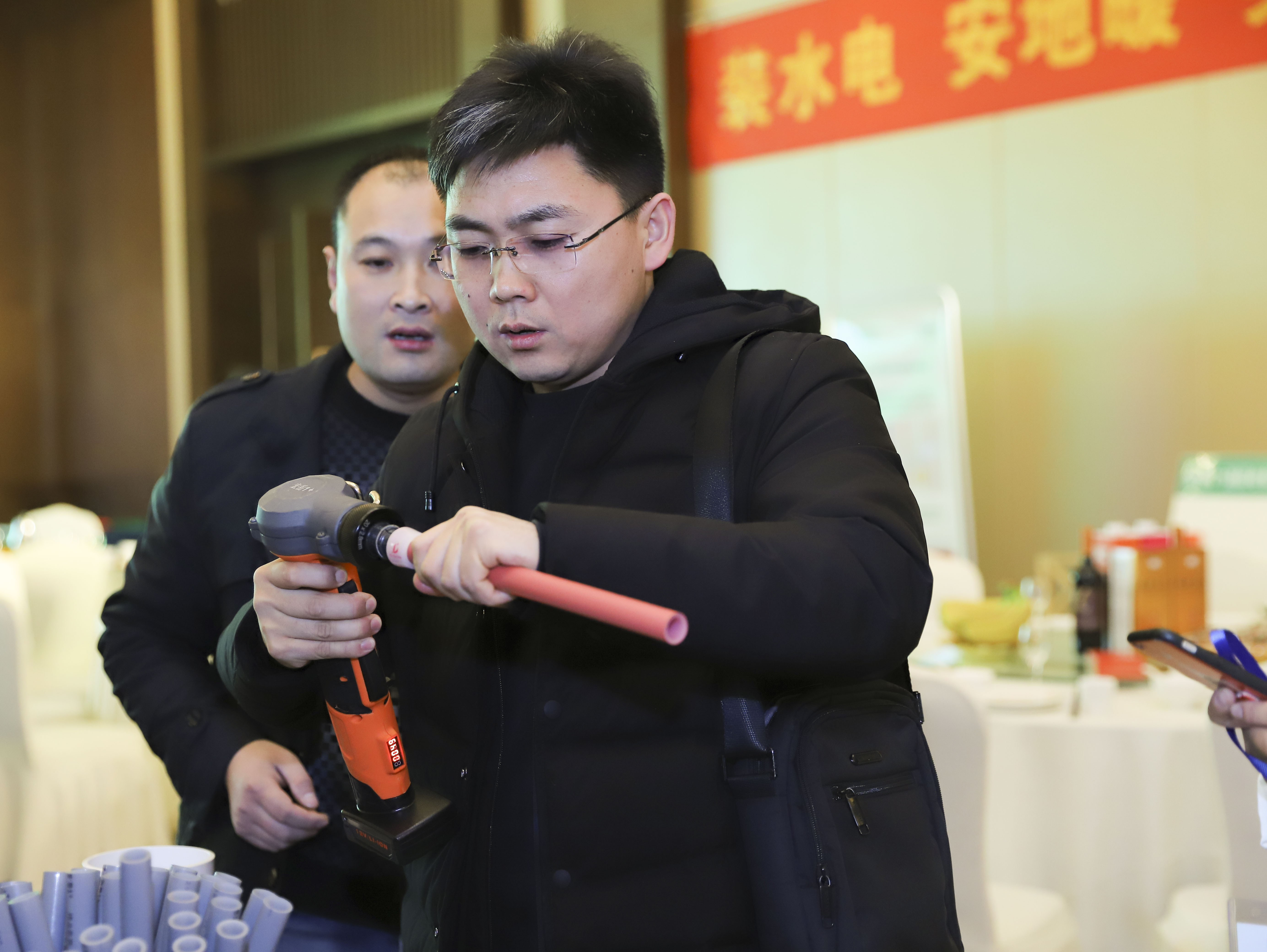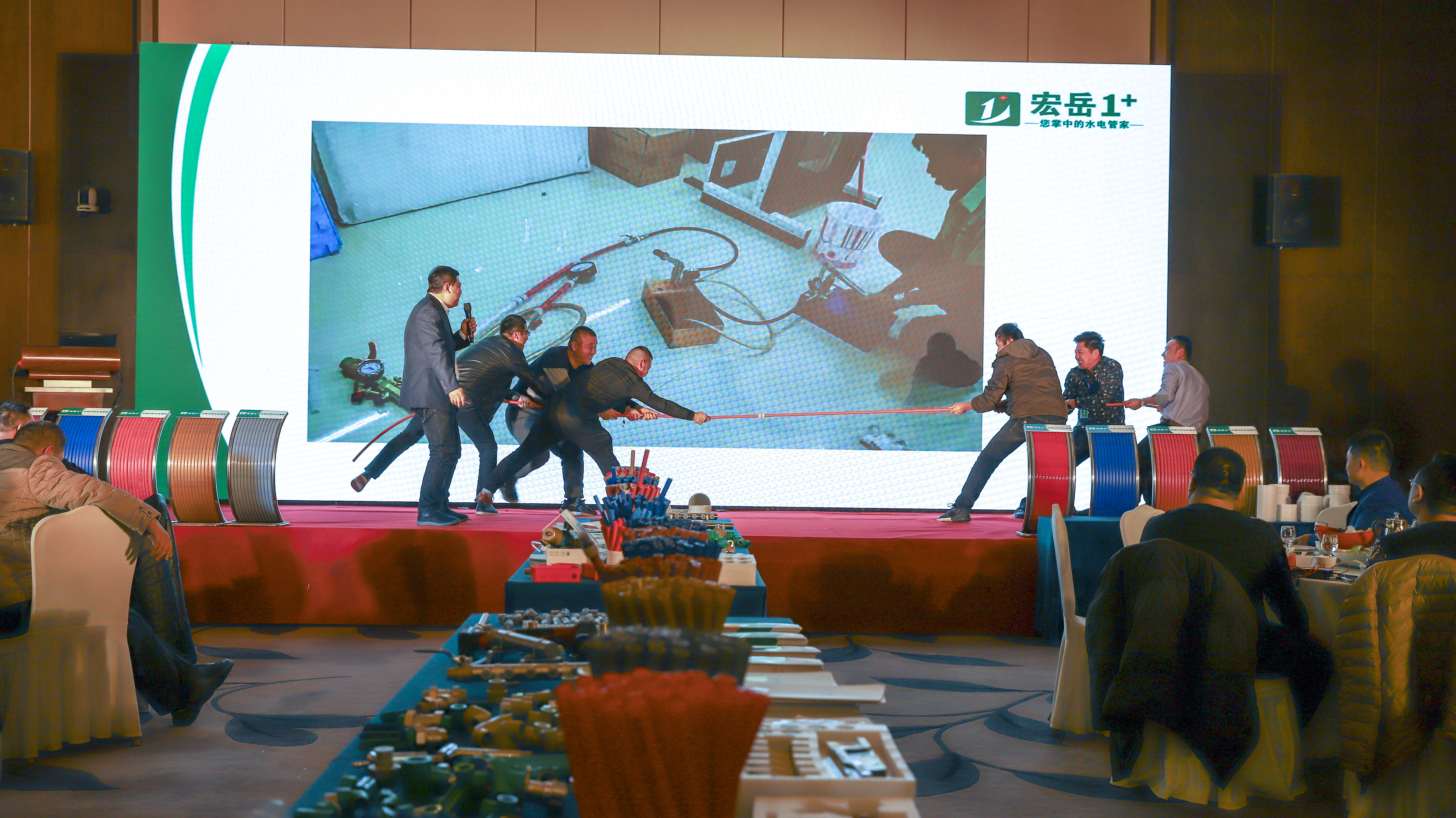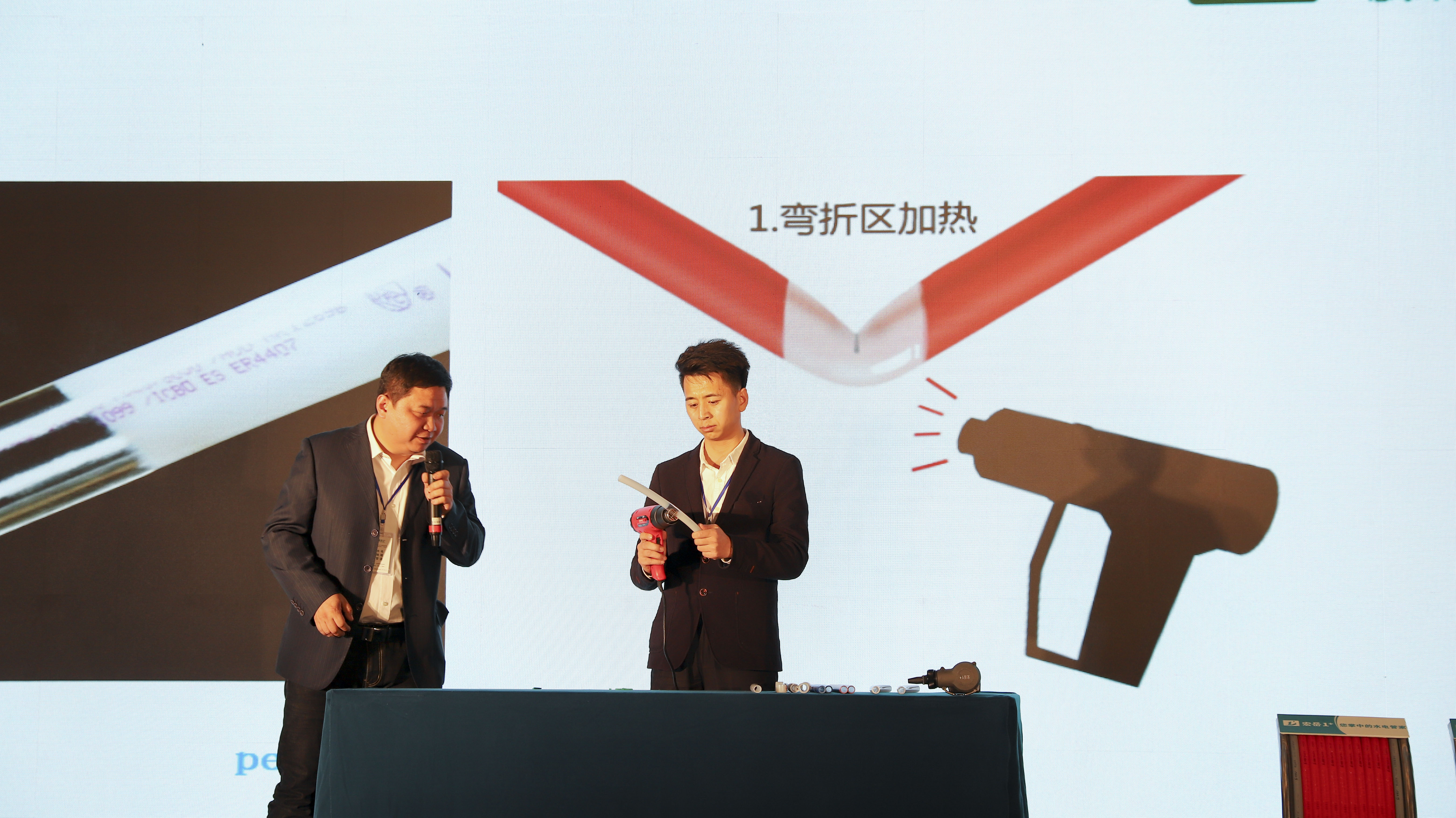 重点提出华体会体育1+PE-Xa给水系统较目前市场主流给水系统降低70%的风险点,耐压高67%,耐温高32%,会上通过现场实验,展现了PE-Xa给水管超强的记忆功能,应对变形折伤加热即可无损复原。