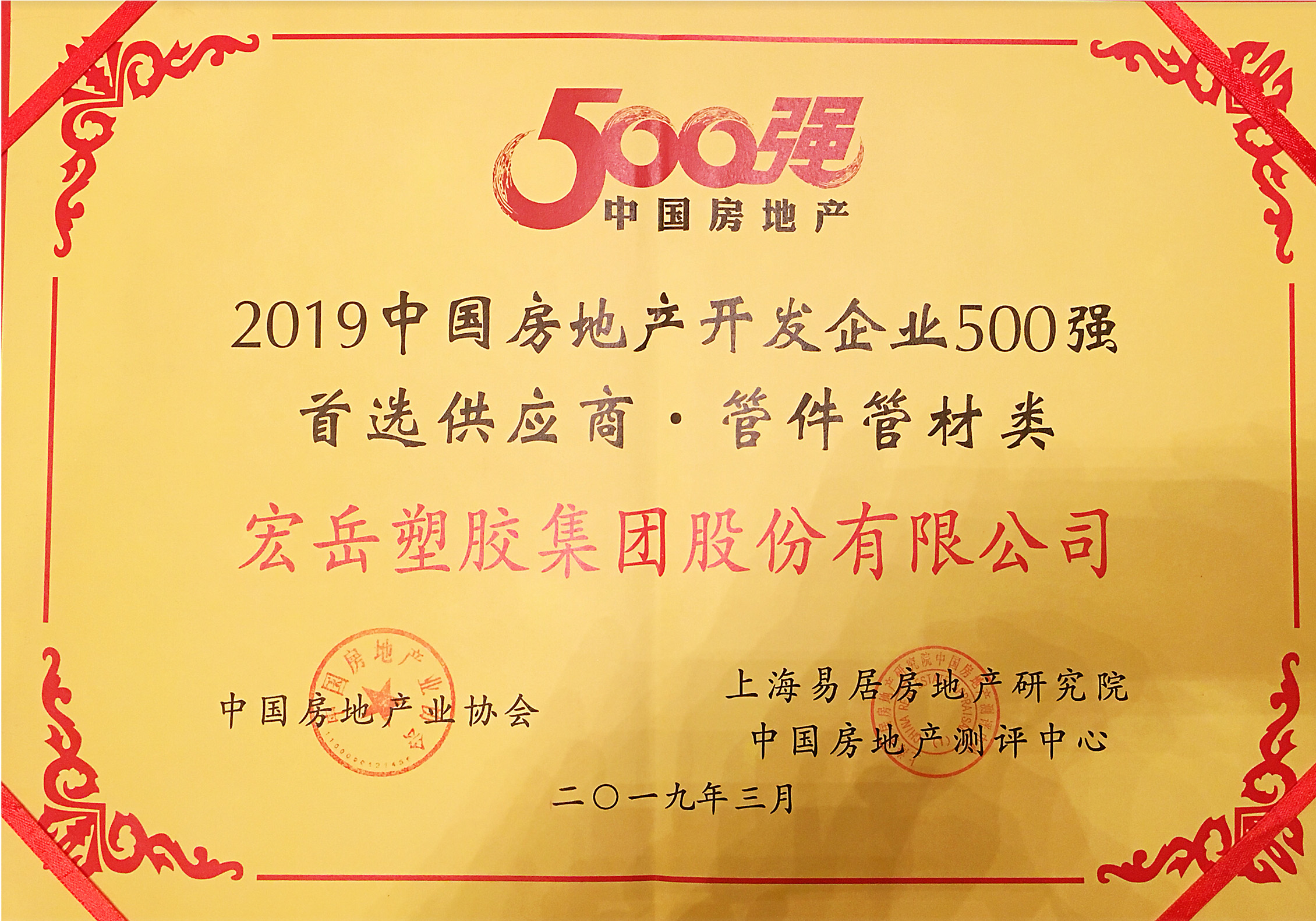 华体会体育集团连续6年获得“中国房地产开发企业500强首选供应商”。华体会体育深耕塑料管道行业,20几年如一日,坚守品质、不忘初心。