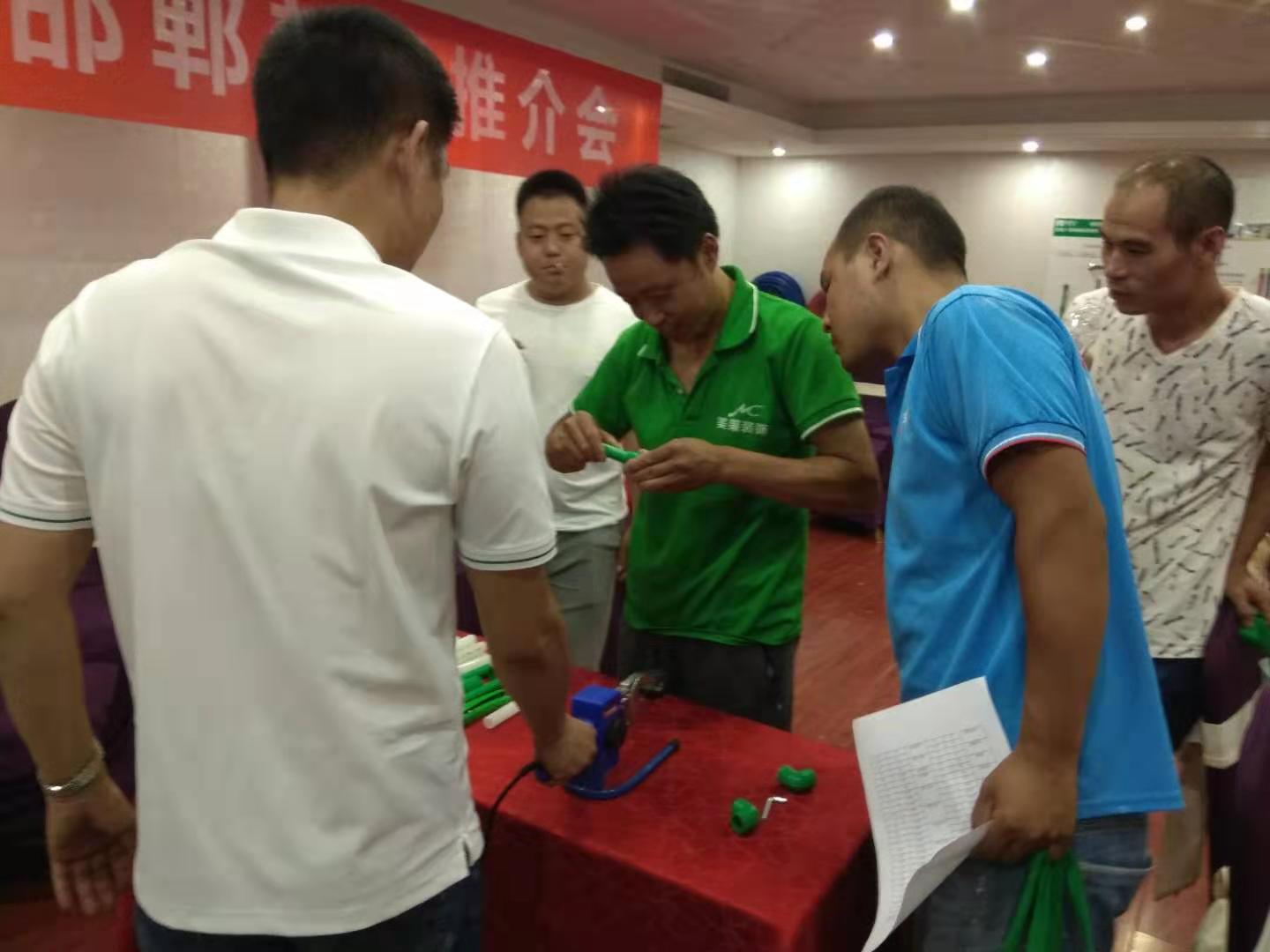 会上,华体会体育1+邯郸服务中心向在场的水电技师们隆重推出了PE-Xa零漏点给水系统,该系统较目前市场主流给水系统降低70%的漏水风险点,耐压性高67%,耐温性高32%。