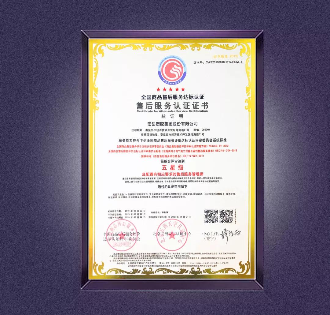 华体会体育1+完善的售后服务,使得华体会体育1+于2019年8月获得全国商品售后服务五星级认证。
