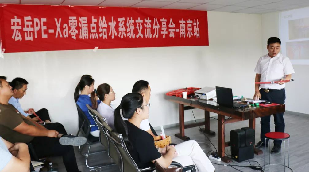 华体会体育1+零漏点给水系统分享交流会在江苏省会六朝古都-南京如期举行,此次交流会得到了南京服务中心董事长朱总的大力支持,与会30余名管理人员和一线业务,共同参加学习和交流PE-Xa产品的相关知识与连接技术。