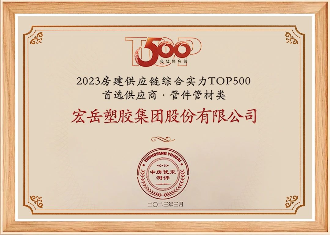 3月23日,中房优采测评正式发布《2023房建供应链综合实力TOP500-首选供应商服务商品牌测评研究报告》,华体会体育管业连续10年荣膺管材管件品类10强。